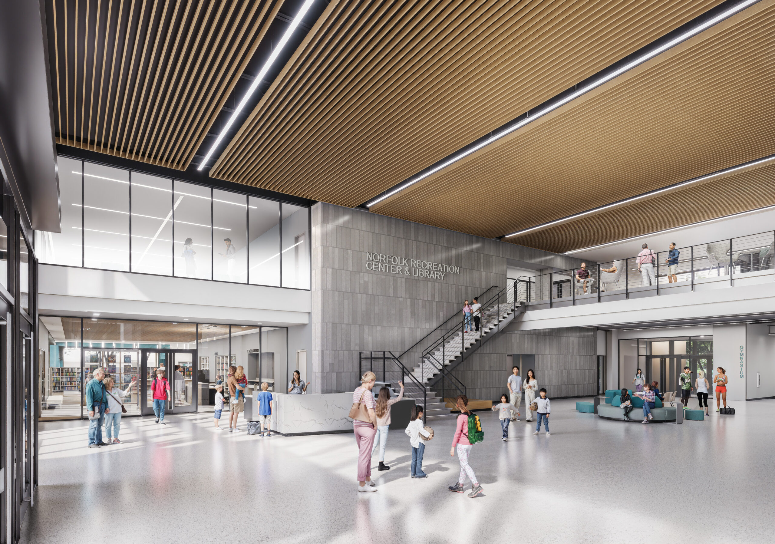The new Combined Recreation Center & Library is part of a nationwide trend towards blended facilities. As a multidisciplinary firm, Clark Nexsen, in partnership with MEB, the City of Norfolk, MSA, and Counsilman-Hunsaker, is well equipped to meet the unique needs of the combined building. Expected to open in 2027, the united facility will enable collaboration between typically separate programs and present unique opportunities for the surrounding neighborhood and the greater Norfolk community.